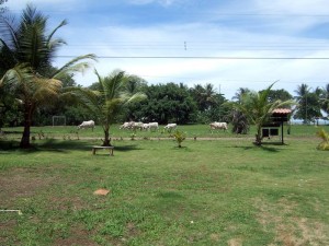 Wir sind, nachdem wir uns von dem Besuch des Serpentariums einigermassen erholt haben, in ein Restaurant zum Mittagessen gegangen und dieses Restaurant war echt cool – ganz im Motto des blauen Schmetterlings „Morphos“ gehalten, die Waende mit schoenen Motiven bemalt, einige Lampenhalter waren wie riesige Schmetterlinge geformt, die Tische sowie die Stuehle waren aus dicken Holzaesten zusammengezimmert und die Tischplatte war ein Schmetterling aus Holz mit einer Glasplatte drauf – echt schoen und auch ziemlich lecker.