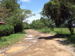 Aber allein der Weg nach Monteverde war gigantisch. Erst war es ein bisschen zaeh, als wir von Montezuma mit dem Bus nach Paquera, von Paquera mit der Faehre nach Puntarenas und von dort wieder mit dem Bus nach Monteverde fahren mussten. Aber sobald wir die letzte „grosse“ Stadt hinter uns gelassen haben, musste der Bus ganz schoen kaempfen, weil es ab da steil bergauf ging und die Strasse nur noch einer Schotterpiste glich. Aber irgendwie war es wie ein Fest fuer die Sinne: